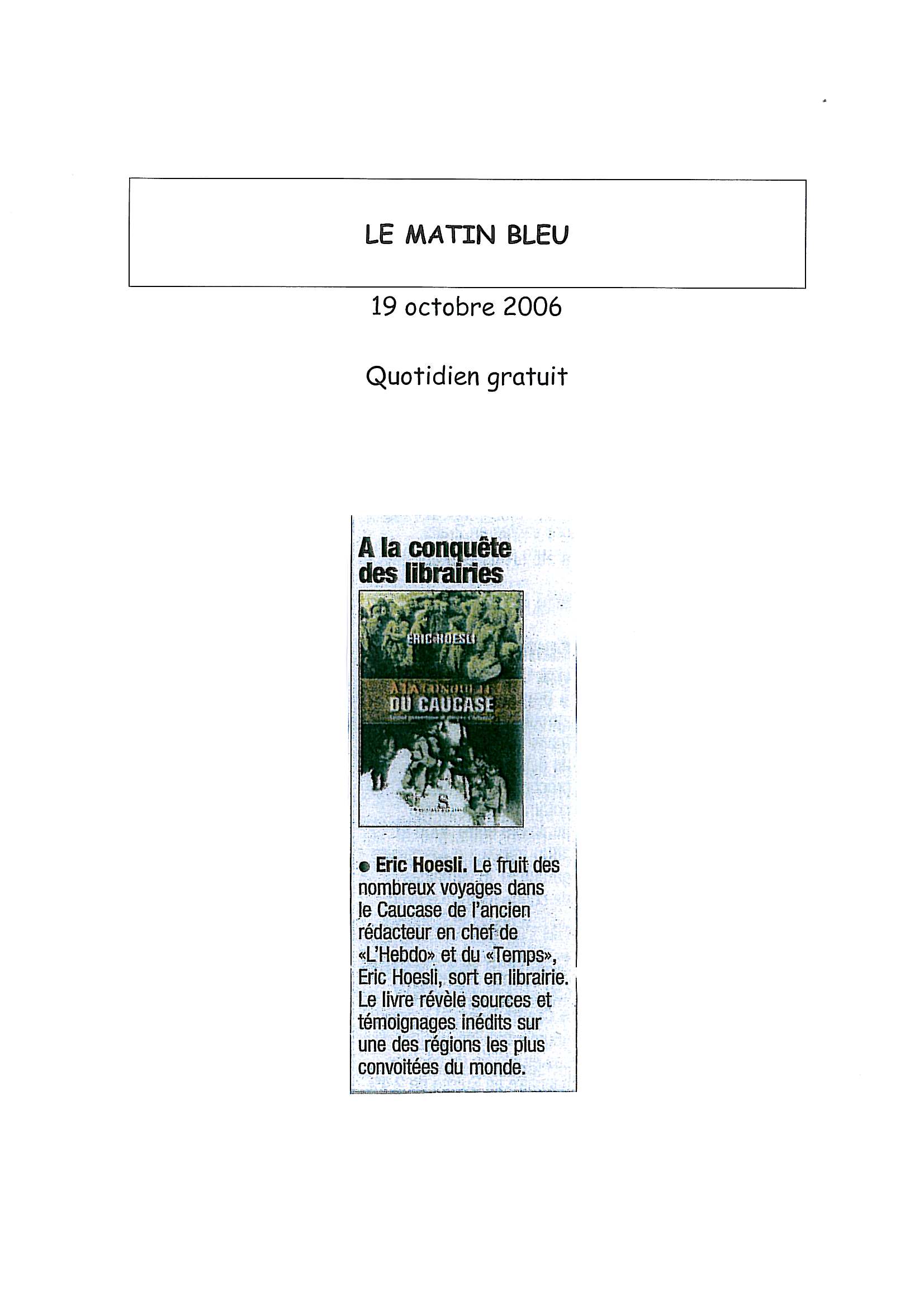 Le Matin bleu 19 octobre 2006